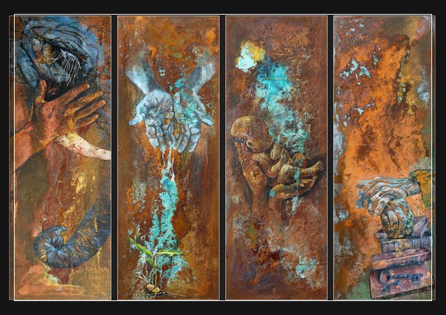 Margit BAUER lebt seit 1976 im Saarland – in Wiebelskirchen. Sie ist gelernte Möbeltischlerin, hat Kunstgeschichte an der Freien Kunstschule in Zürich und Kunsttherapie sowie humanistische Pädagogik in Heidelberg und Siegen studiert, Während ihrer 35 Berufsjahre in der Behindertenarbeit, machte sie sich auch als freischaffende Künstlerin einen Namen. Viele Projekte, Ausstellungen und Arbeiten im öffentlichen Raum im In, -und Ausland gaben ihr das Gefühl auf dem richtigen Weg der Ausdrucksmöglichkeiten zu sein, wenn es um ihre innere Welt oder Auseinandersetzung gesellschaftskritischer,- und zeitkritischer Themen ging. Ihr soziales Engagement für Randgruppen in sozialen Brennpunkten oder die Unterstützung verschiedener Hilfsprojekte in Burkina Faso, sowie ihre Liebe zur Natur, fremden Völkern und Kulturen gegenüber, haben sie geprägt und inspiriert. Es ist seit sie denken kann eine ungebrochene Leidenschaft mit den Materialien Ton,- Farbe und der Glastechnik Pate de Verr`e zu arbeiten. Immer in Bereitschaft zu experimentieren. Die Technik,- das Material und sich selbst bis an die Grenze auszuprobieren und dabei neue Wege zu finden.