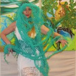 In der Kleiderkunst und Objektgestaltung verbindet sich Fallschirmseide mit besticktem Chiffon, zarte Spitze mit Gobelin oder Metallbrokat, etc. Ihre Netzkunst-Performance wirkt verzaubernd und ist in ihrer Art einzigartig!